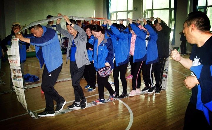 每個隊用提供的材料將報紙圍成一個可以行進的履帶式的環,要求本組所有成員在規則要求下走完規定的路程,以最快到達終點的組為優勝。