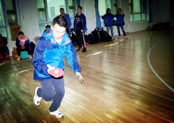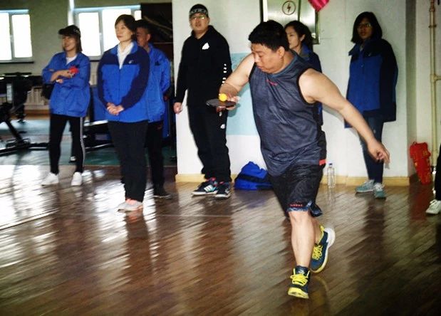 每隊選出八人參加比賽,參賽的各位小伙伴用乒乓球拍傳遞乒乓球,乒乓球不能落地,不能用手觸碰乒乓球,率先完成的隊伍即可獲勝。